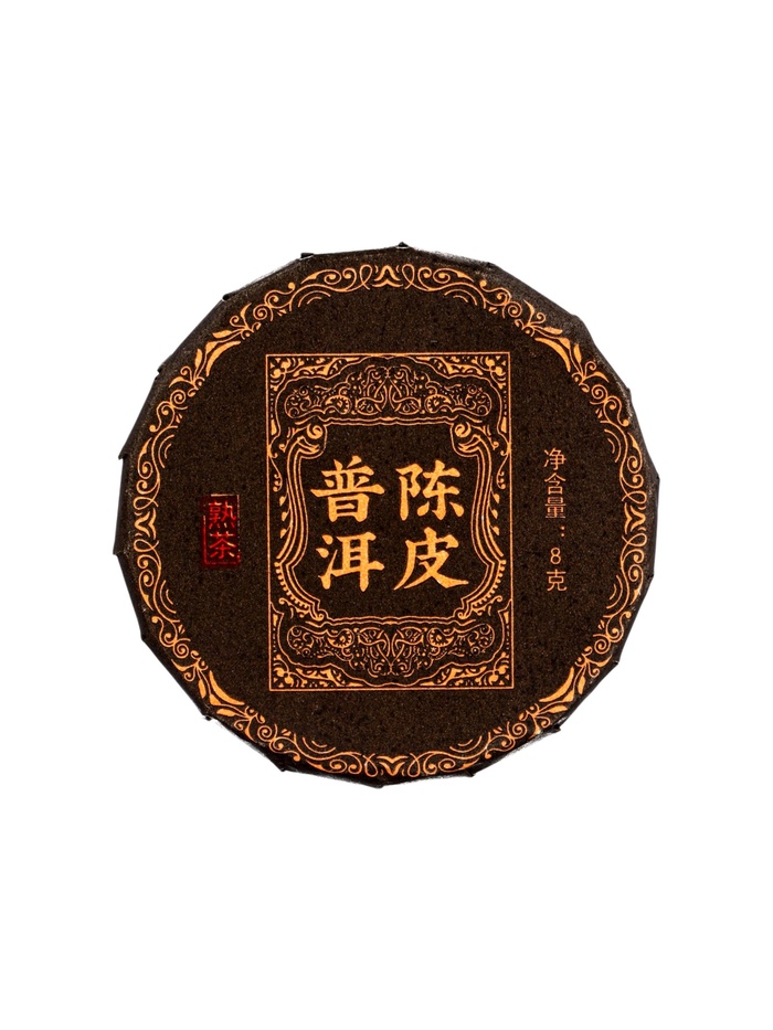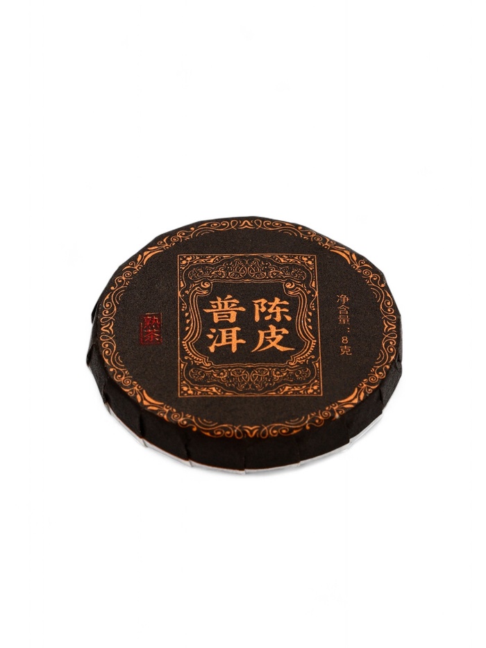 Традиционный пуэр с цитрусовой нотой! Шу пуэр с мандарином — это ферментированный чай с добавлением цедры или кусочков мандарина. Небольшой вес в 9 грамм рассчитан на одно полноценное чаепитие.