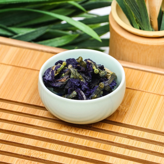 В основе чая - сушеные цветки клитории тройчатой, поэтому он имеет необычный цвет и оригинальный приятный сладковатый вкус с насыщенными цветочными нотками. Чай Чанг Шу ускоряет процессы жиросжигания в организме, его часто используют как средство для похудения.