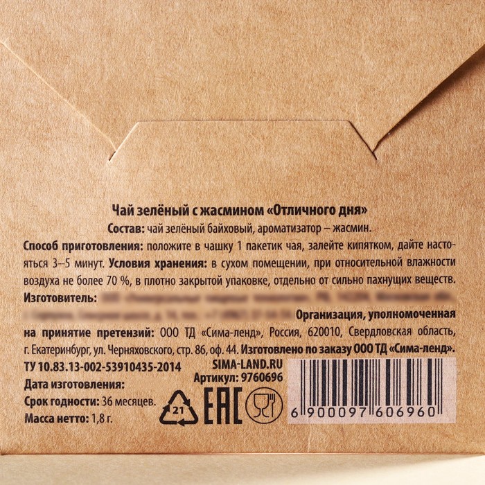 Состав: чай зелёный байховый с жасмином.