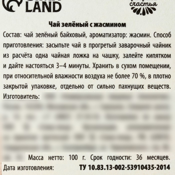 Состав: чай чёрный байховый. ароматизатор: жасмин.