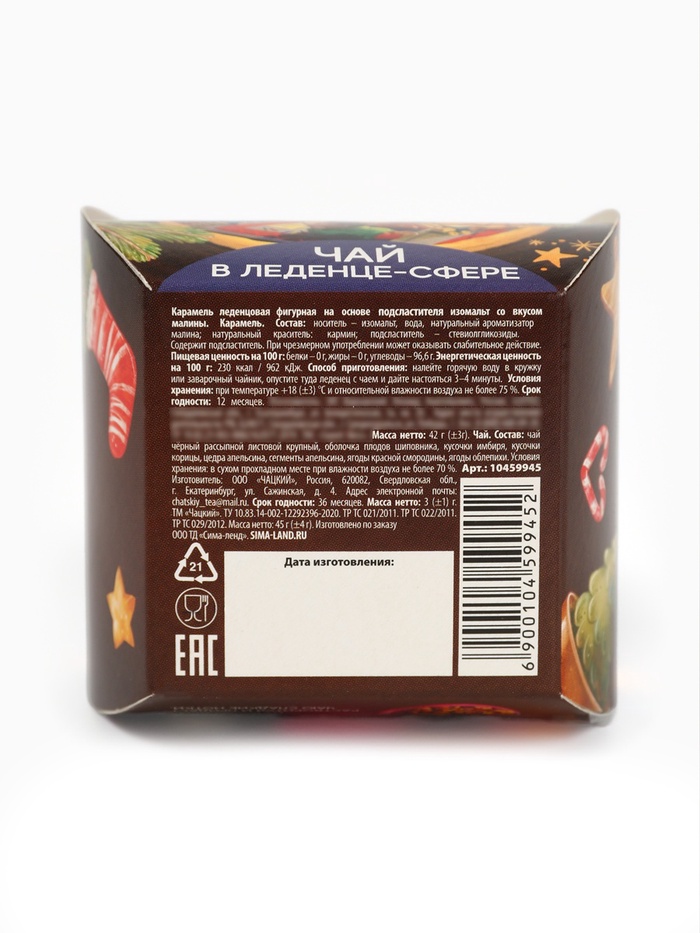 Способ приготовления: налейте горячую воду в кружку или заварочный чайник, опустите туда леденец с чаем и дайте настояться 3-4 минуты.