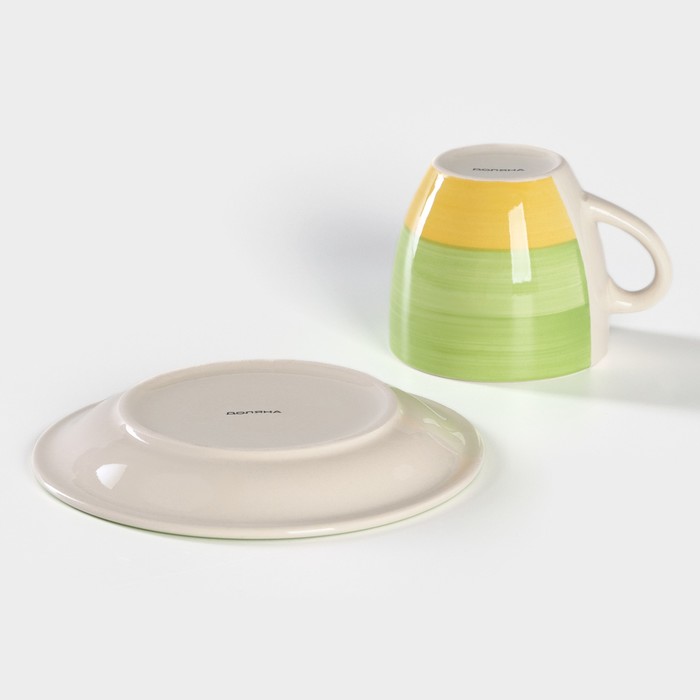 Чайная пара Доляна «Подсолнух» изготовлена из прочной керамики. Такая посуда отличается надёжностью и высоким качеством исполнения. Благодаря оригинальному дизайну изделие легко украсит вашу кухню, а также прекрасно подойдёт в качестве подарка. Чашка и блюдце выполнены в приятных тонах, что позволит вписать их практически в любой интерьер.