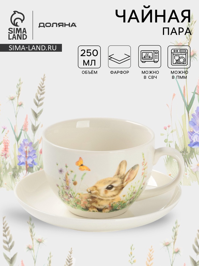 Представьте: нежный солнечный луч, аромат свежей выпечки, и в ваших руках – чашка чая, украшенная очаровательным зайчиком. Эта фарфоровая чайная пара, состоящая из чашки (250 мл) и блюдца, словно создана для теплых семейных чаепитий в светлый праздник Пасхи. Её нежный дизайн подарит вам и вашим близким хорошее настроение!