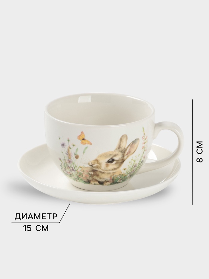 Фарфоровая чайная пара «Зайка»: Наполните утро пасхальной радостью!