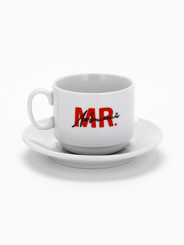 Набор чайной пары «Мистер любимый» состоит из кружки и блюдца.