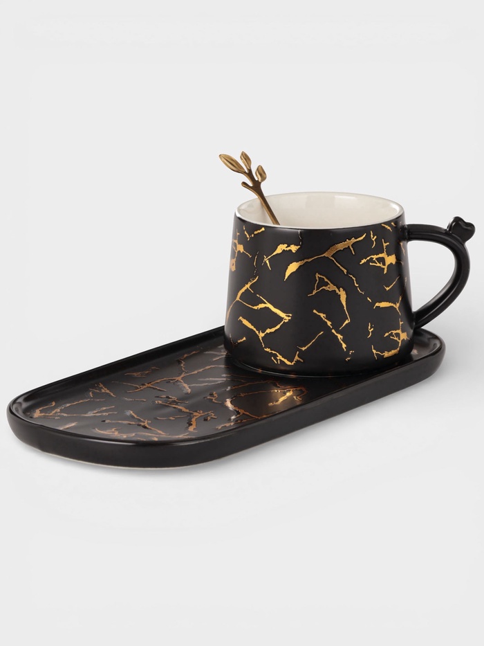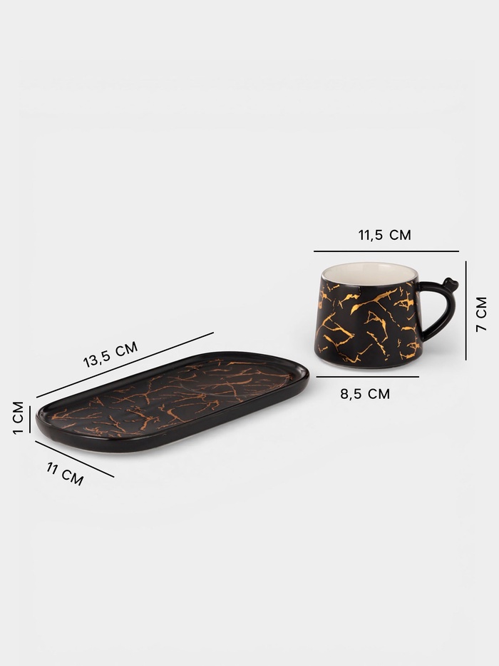 Чайная пара «Мрамор», 2 предмета: чашка 250 мл, блюдце 13.5×11×1 см, керамика, чёрная