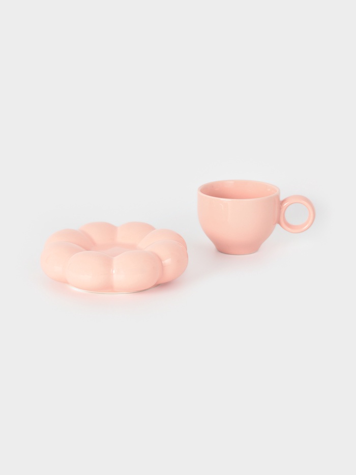 Чайная пара "Облако" цвет розовый, блюдце 14х3см, чашка 12х8,5х7 см