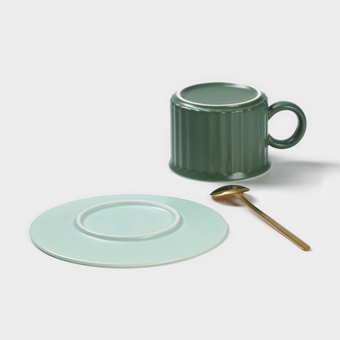 Зеленый чайный набор с рельефной текстурой подойдет для уютных чаепитий или в качестве подарка ценителям эстетики посуды. Керамическая чашка объемом 180 мл, блюдце диаметром 13,7 см и ложка выполнены в едином стиле — матовая поверхность добавляет изделию глубины, а насыщенный цвет создает ощущение свежести. Компактный комплект удобно использовать дома, в офисе или дарить как аксессуар для традиционных ритуалов.