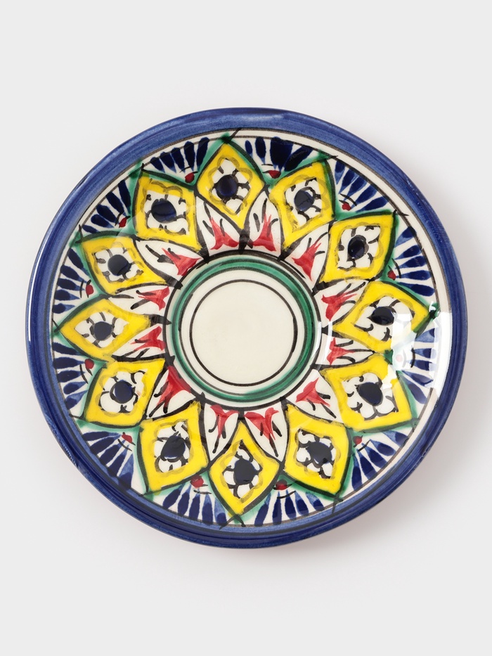 - Тематика — растительный орнамент: украшает поверхность и подчеркивает традиционный узбекский стиль.