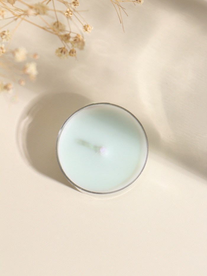 Светло-голубой оттенок и мягкое пламя визуально смягчают обстановку, добавляя интерьеру лёгкости. Используйте свечу для медитации, создания интимной обстановки или как завершающий штрих в сервировке. Она станет внимательным подарком, который говорит о заботе без лишних слов.