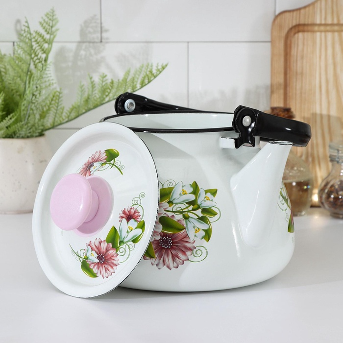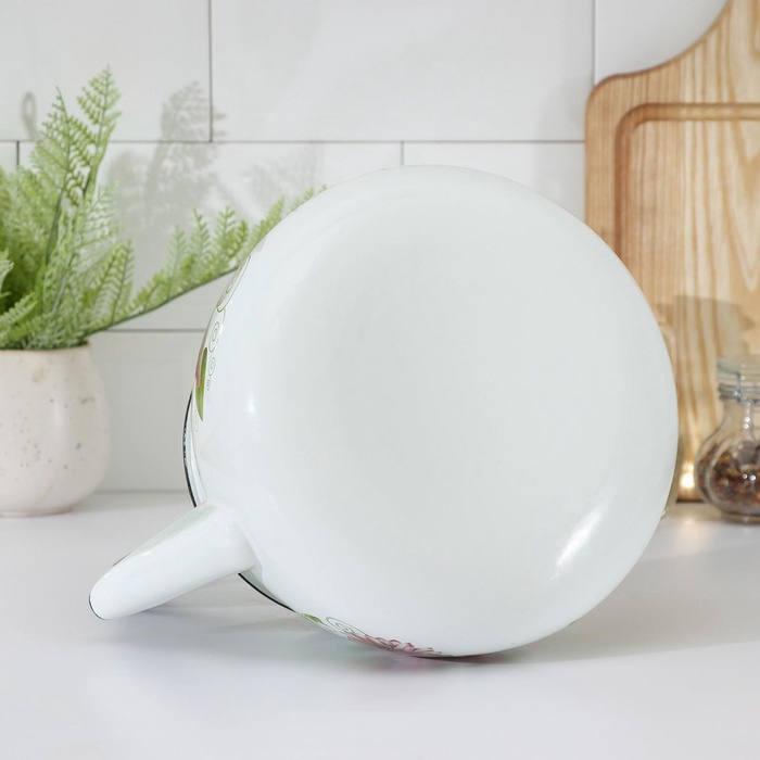 Чайник, 3 л, эмалированная сталь, рисунок МИКС, белый