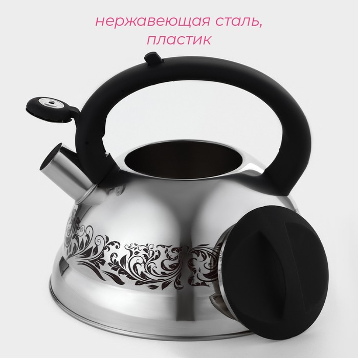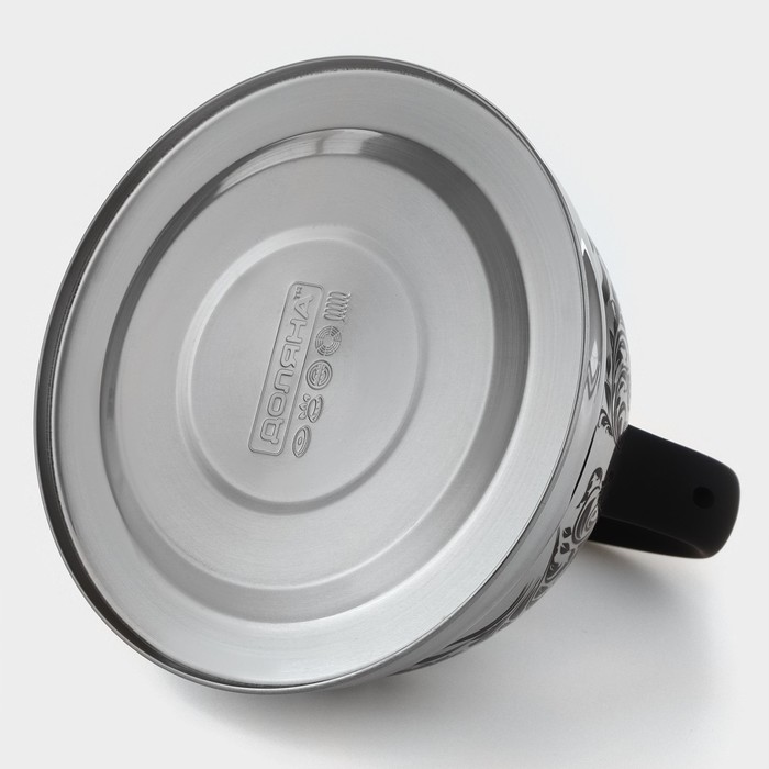 Чайник Доляна «Расцвет», 2.8 л, со свистком, фиксированная ручка, с индикатором нагрева, нержавеющая сталь, серебристый