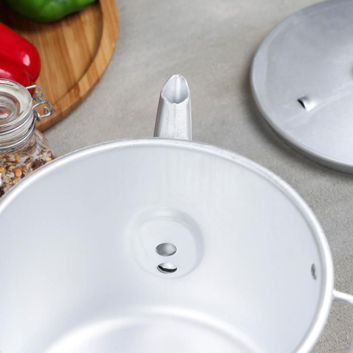 Этот чайник выполнен из высококачественного алюминия, который обеспечивает долговечность и надёжность изделия. Благодаря своей конструкции, он быстро нагревается и долго сохраняет тепло. Чайник легко моется и не требует особого ухода. Удобная ручка и крышка обеспечивают комфортное использование.