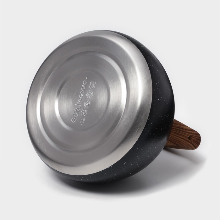 - Толстое дно с пластиной из нержавеющей стали позволяет использовать чайник на индукционной плите.