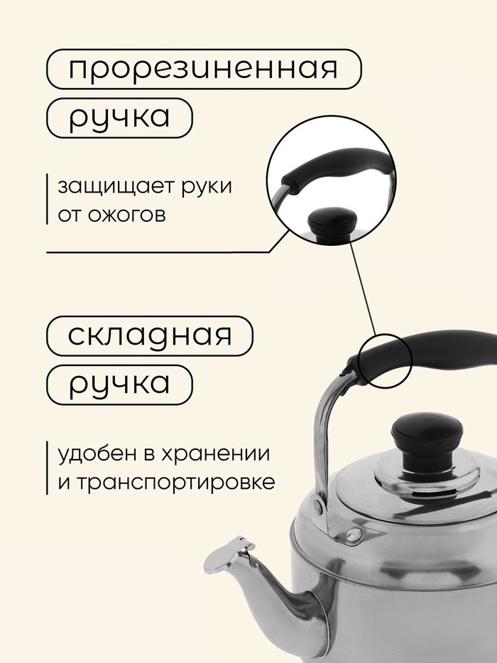 Походный чайник подойдёт для кипячения воды на природе и на кухне. Изделие можно использовать на костре, газовой плите и горелке. Чайник оснащён крышкой с ручкой и защитным клапаном.