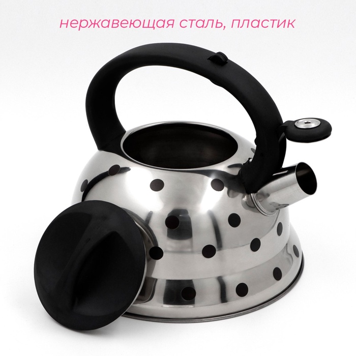 Чайник со свистком из нержавеющей стали — Хромированное покрытие придаёт изделию стильный и современный вид. Удобная ручка обеспечивает безопасность и комфорт при использовании. Этот чайник станет незаменимым помощником в вашем доме и прослужит долгие годы.