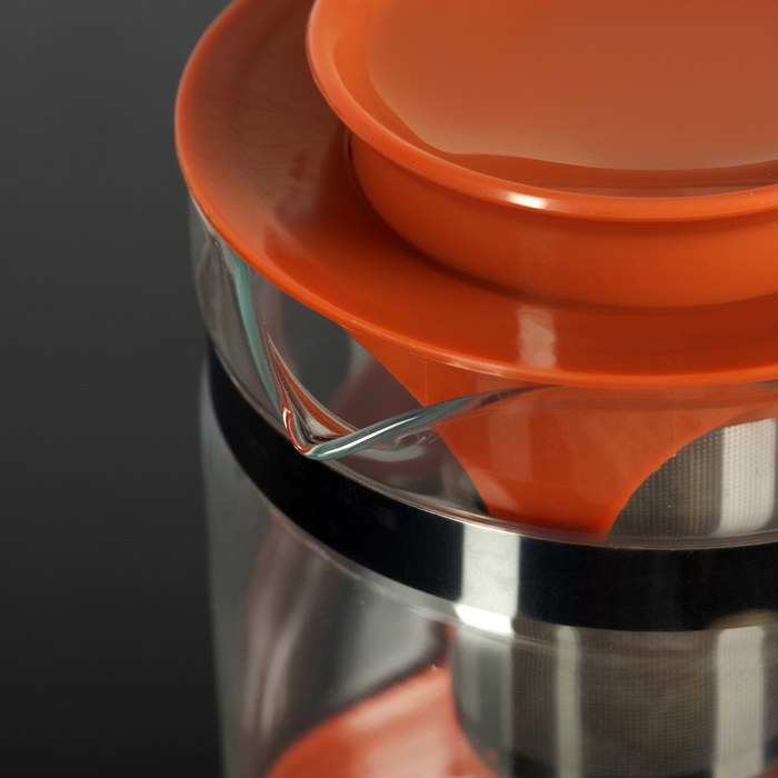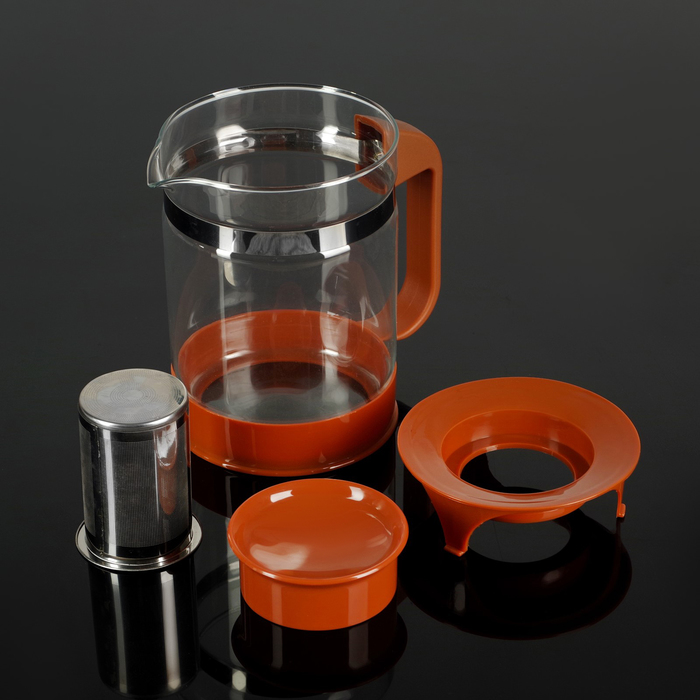 Чайник заварочный объемом 1,25 л представлен прочной стеклянной колбой и дополнен фильтром для заварки из нержавеющей стали.