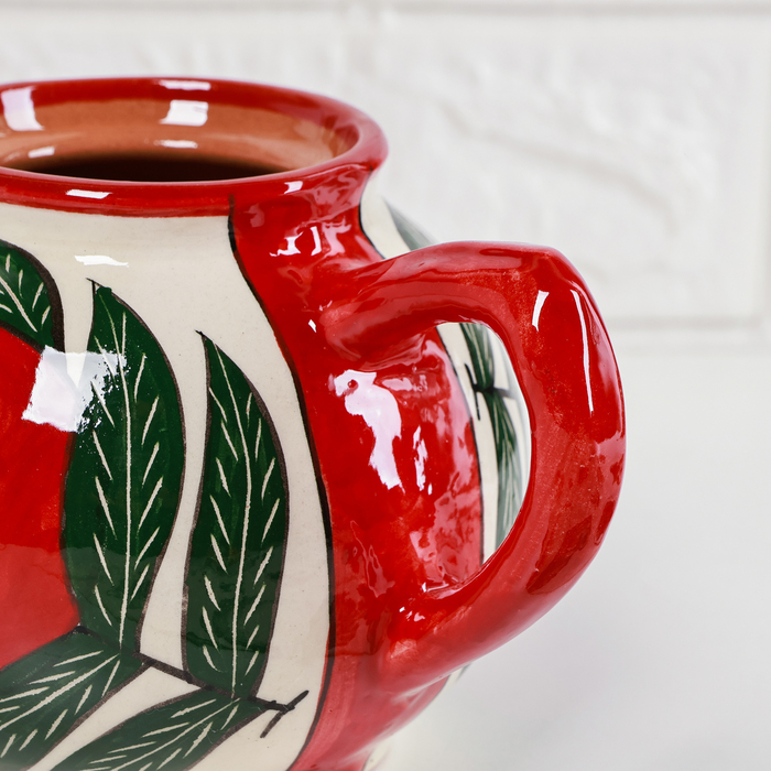 Этот чайник отлично подойдет для тех, кто ценит традиционное чаепитие и хочет добавить яркий акцент в свою кухню. Его качественный материал и оригинальный дизайн делают его не только функциональным предметом, но и элементом декора. Ручная работа гарантирует уникальность каждого изделия, а гладкая текстура облегчает уход за ним.