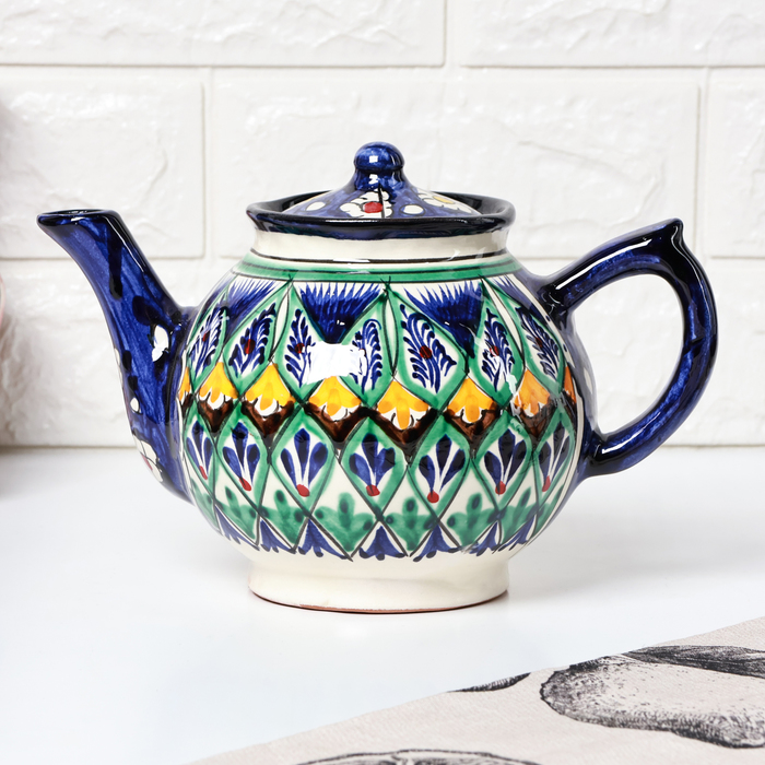 Керамический заварочный чайник объемом 1 литр с синим цветом и растительным орнаментом станет практичным и эстетичным дополнением к вашей чайной посуде. Его ручная работа и гладкая текстура подчеркивают уникальность каждого изделия, а яркий дизайн добавит восточного колорита в домашнюю атмосферу. Такой чайник идеально подходит для заваривания различных видов чая и создания уютных чаепитий.