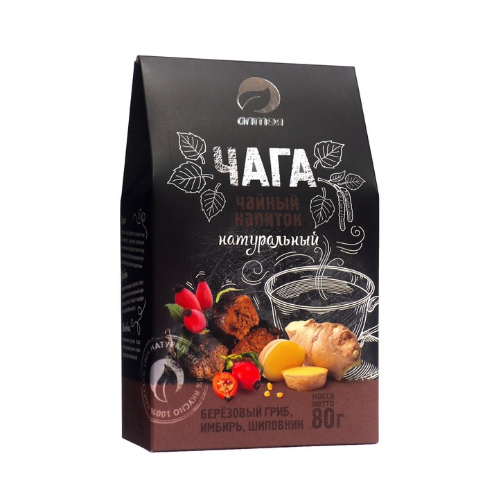 Состав: чага (берёзовый гриб), корень имбиря, плоды шиповника.