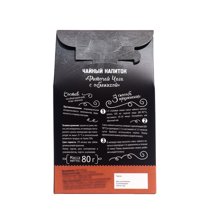 Состав: чага (берёзовый гриб), ягоды облепихи.