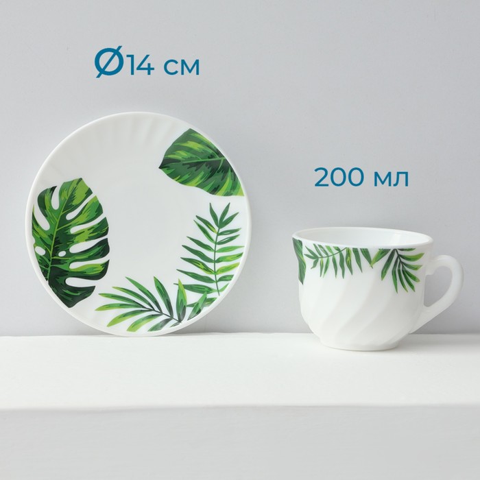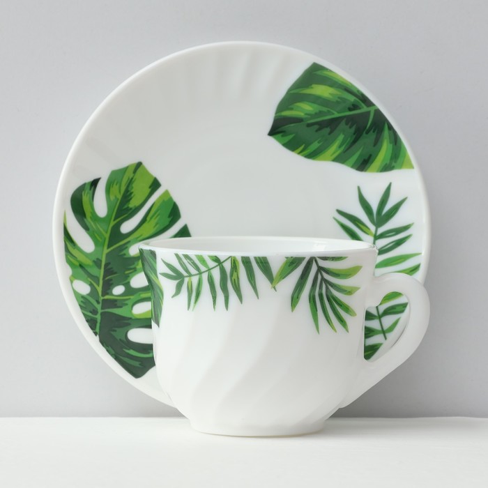 Чайный сервиз Avvir «Лист папоротника», 12 предметов: чашка 200 мл, блюдце d=14 см, стеклокерамика, белый