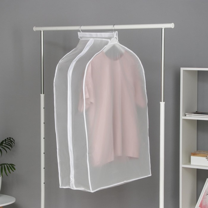 - Чехол надёжно защищает одежду от пыли и грязи, от насекомых, механических повреждений или от возможного выцветания.