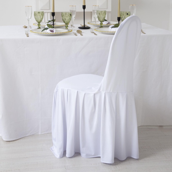 Этот белый чехол с элегантной оборкой — простое и стильное решение для обновления интерьера. Он аккуратно натягивается на стул, скрывая следы времени и повседневного износа. Практичный сатин из полиэстера приятен на ощупь и легко ухаживает за собой, сохраняя свежий вид.