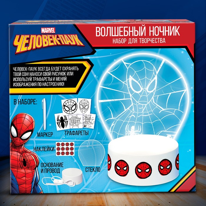 Человек-паук «Волшебный ночник» — это уникальный набор для детей от 5 лет, который помогает развивать креативные навыки и фантазию. С помощью этого ночника ребёнок сможет создавать свои световые композиции, используя любимых героев из популярного мультфильма.