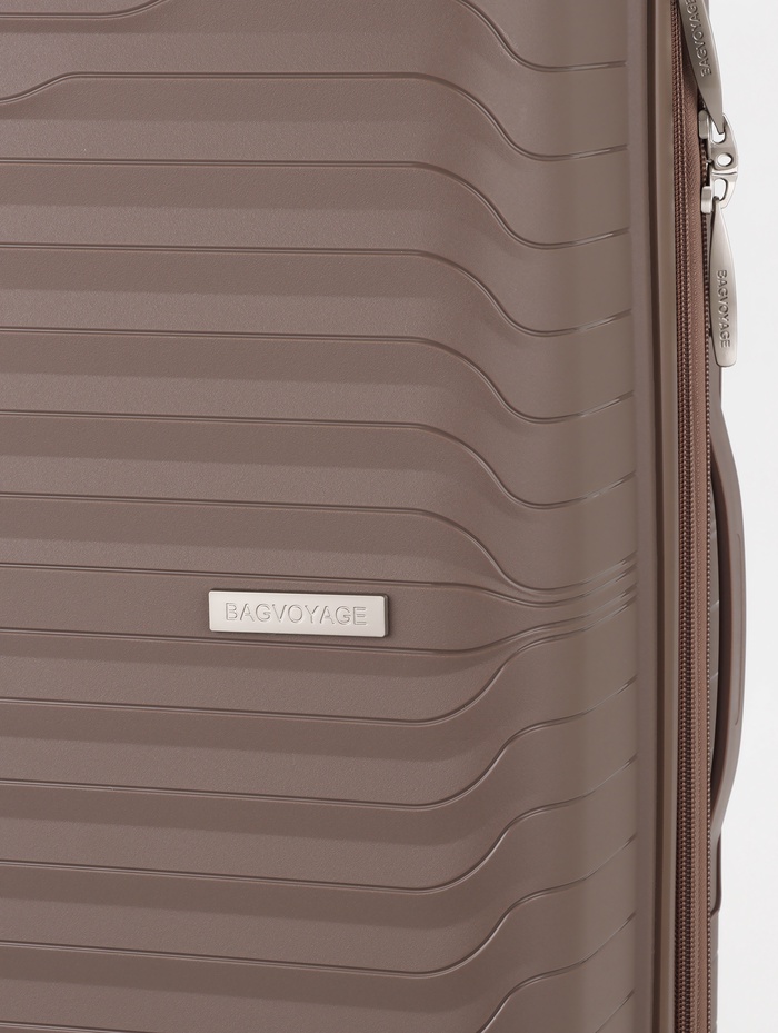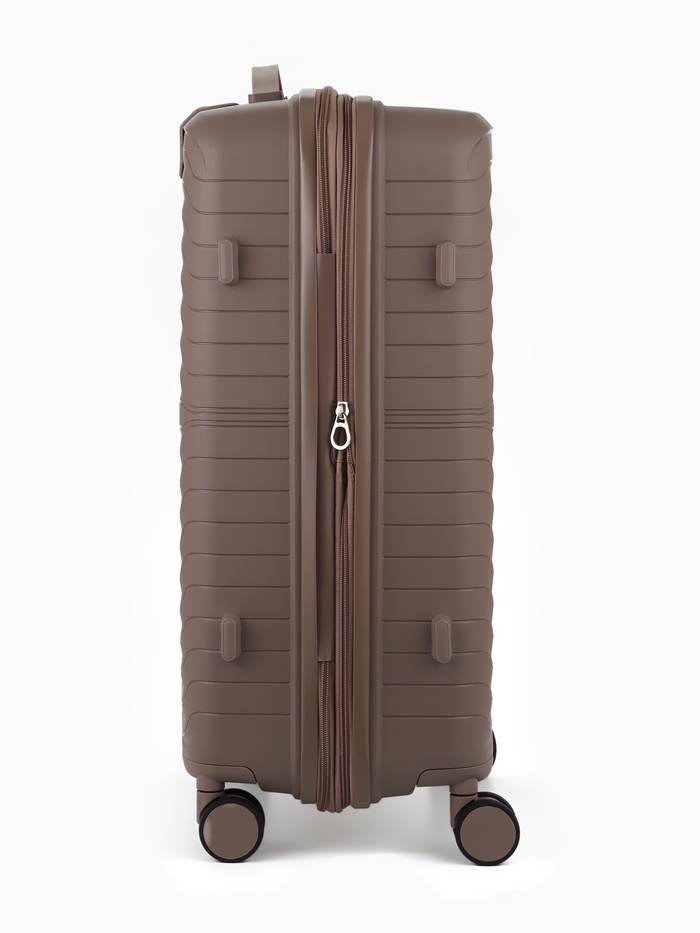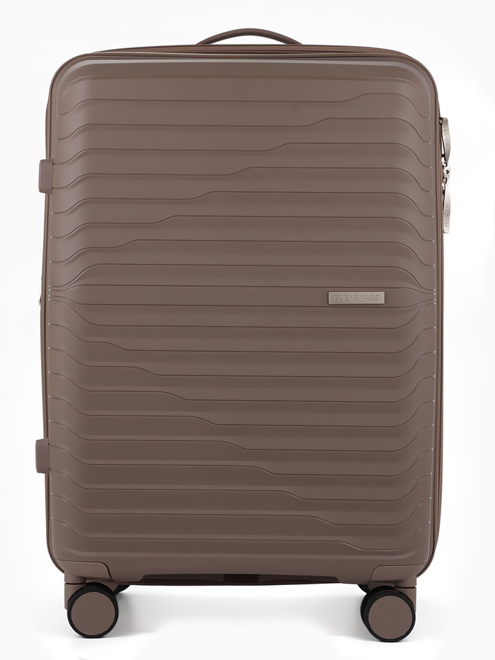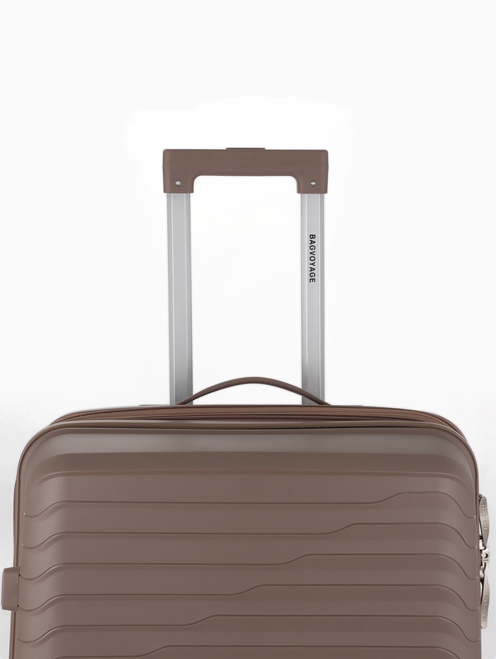Чемодан маленький, 24", РР, кодовый замок, 4 колеса, 43×26×66 см, бежевый