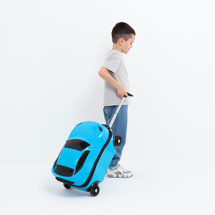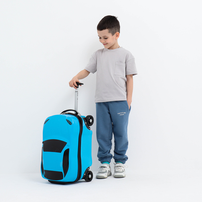 Чемодан малый 20" на молнии, 4 колеса, цвет голубой