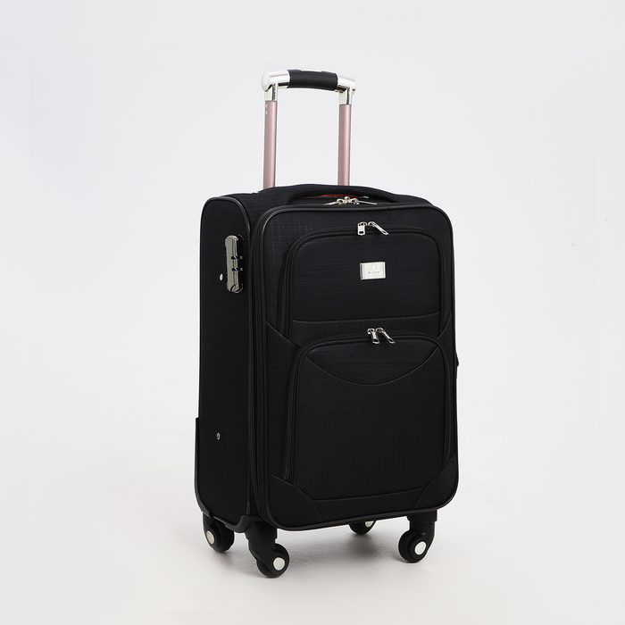 Чемодан малый 20" на молнии, кодовый замок, с расширением, цвет чёрный