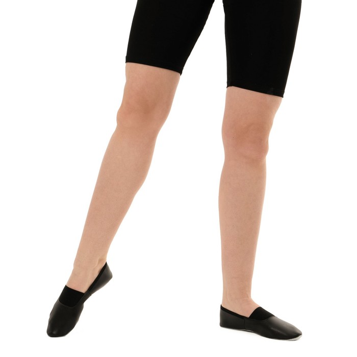 Чешки подходят для занятий танцами, гимнастикой и спортом. Подошва из натуральной кожи не скользит на гладком паркете и обеспечивает хорошее сцепление с площадкой. Широкая мягкая резинка крепко удерживает стопу, с ней чешки плотно сидят на ноге. Нейтральный цвет подойдёт любому костюму.