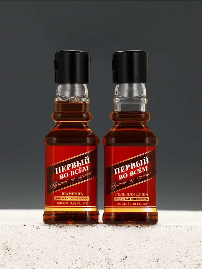 Чистое счастье Мужской набор "Первому", мини гель Виски, мини шампунь и мочалка для тела №3