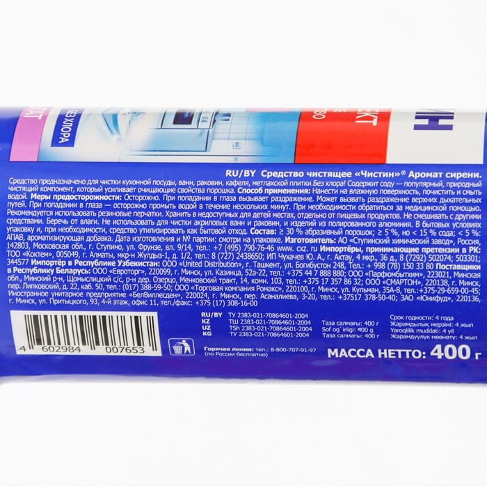 стойкими загрязнениями. Экономичен в употреблении. Предназначен для очистки плитки, ванны, раковины, плиты, посуды и т.д.