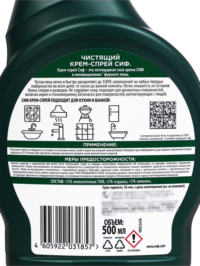 Чистящее средство для ванной и кухни СИФ крем, пена, спрей, 500 мл