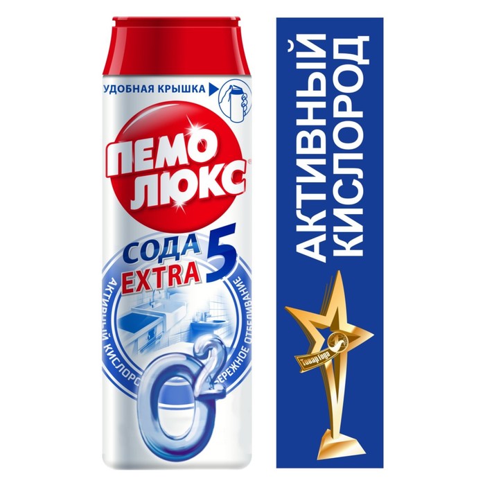 Порошок содержит в составе уникальную формулу с содой, мягким абразивом и активным кислородом. Поможет вернуть первоначальную белизну поверхностям. Активный кислород борется сосложными загрязнениями, таким как пятна чая, кофе, ягод. «Пемолюкс» не содержит опасных химикатов и подходит для чистки керамических, эмалированных,металлических и других твёрдых поверхностей на кухне, в ванной и в прочих помещениях.