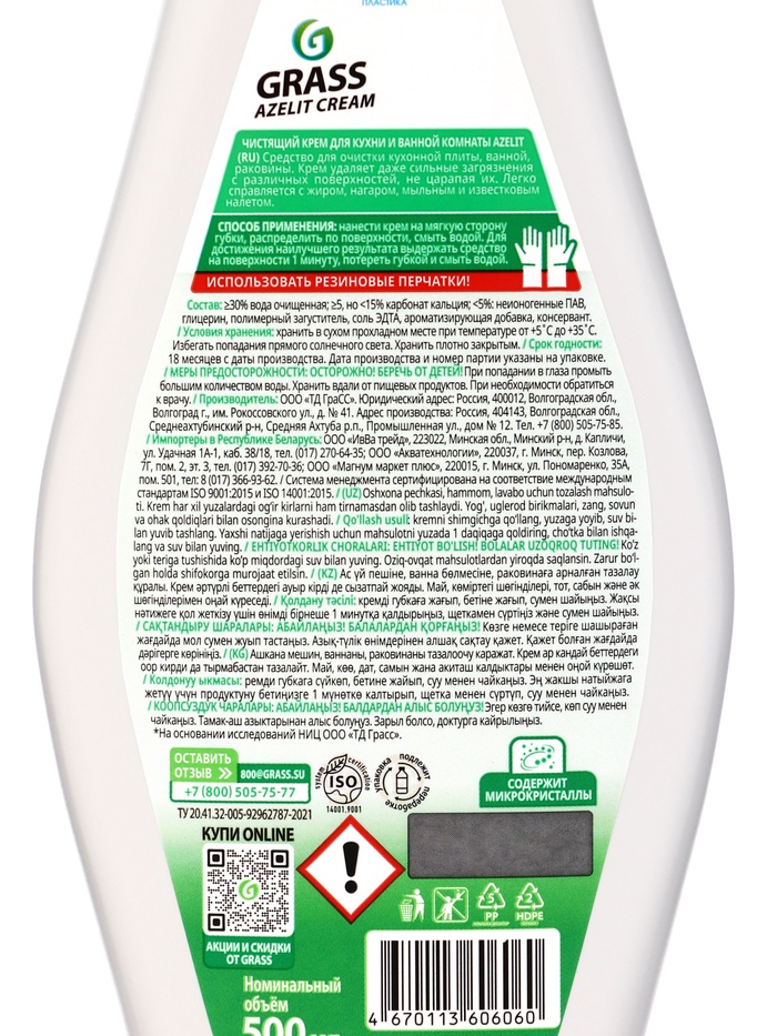 Состав: ≥30% вода, ≥5%, но <15% карбонат кальция, <5%: анионные ПАВ, неионогенные ПАВ, полимерный загуститель, ароматизирующая добавка.