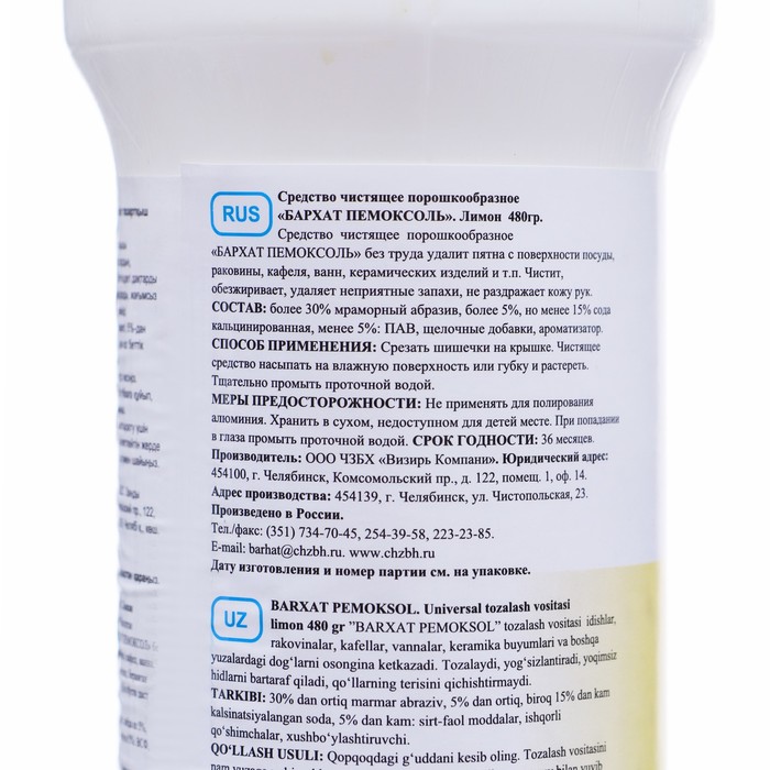 Чистящий порошок БАРХАТ ПЕМОКСОЛЬ, Лимон, 480 г - это эффективное и надежное средство для уборки и очистки различных поверхностей.