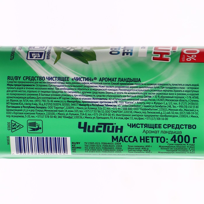 Способ применения: Нанести на влажную поверхность, почистить и смыть водой.
