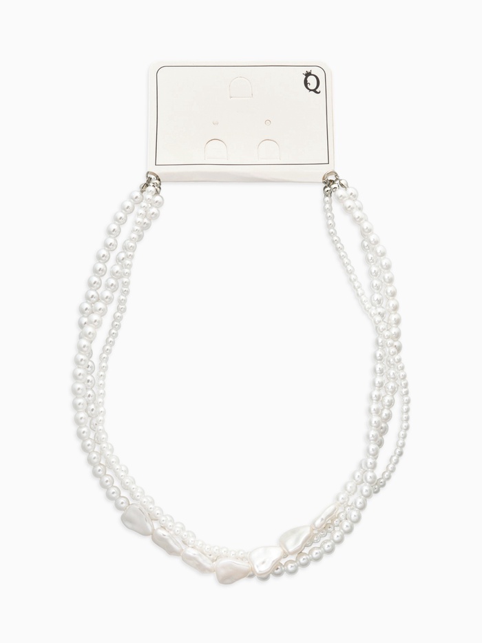 Это многослойное украшение длиной 45 см представляет собой тщательный баланс минимализма и изящества. Белые бусины с нежным жемчужным отливом гармонично соединяются с серебристой фурнитурой, придавая образу легкость и свежесть без излишней вычурности.