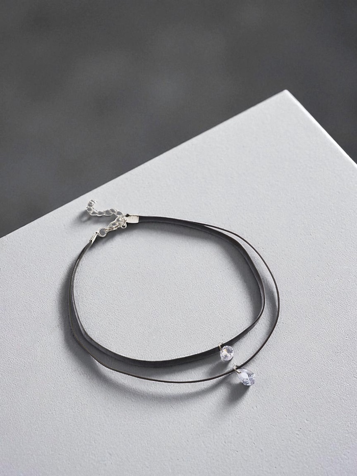 Чокер с двумя нитями и миниатюрной каплей белого цвета длиной 35 см сочетает в себе элегантность и современный стиль. Благодаря текстильной основе и серебристой фурнитуре, украшение легко адаптируется к разным образам, становясь универсальным аксессуаром для женщин любого возраста.