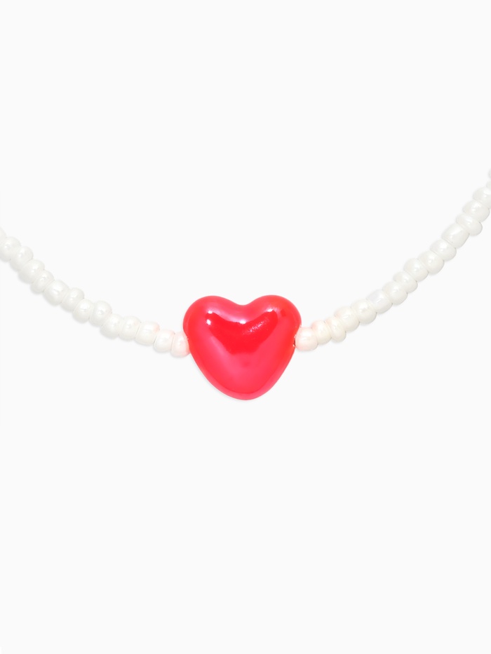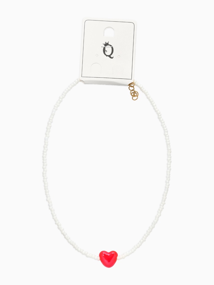 Чокер из бисера "Сердце", цвет бело-красный в золоте, L=45 см