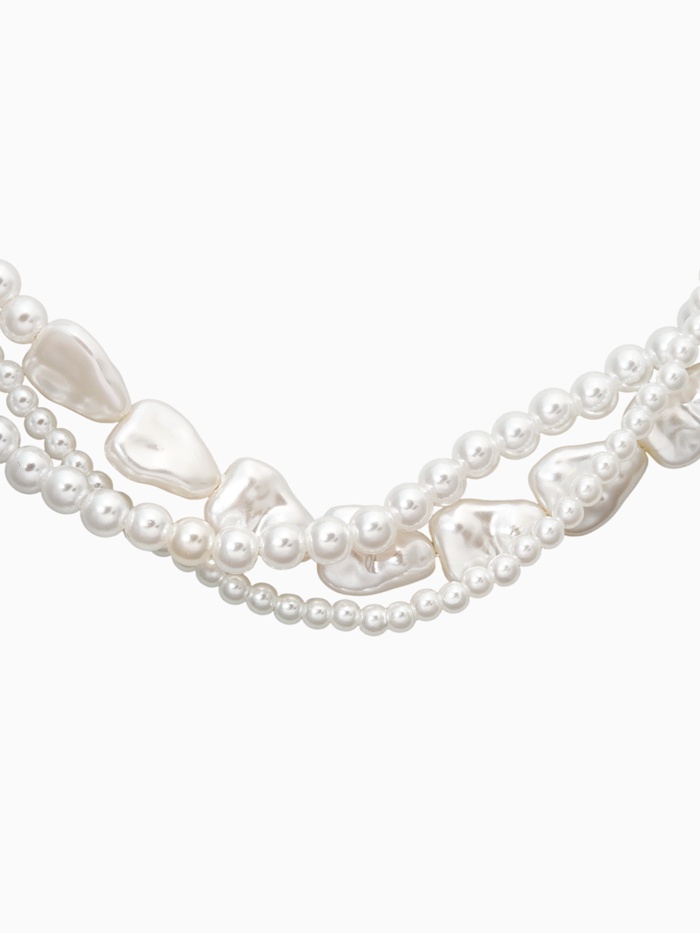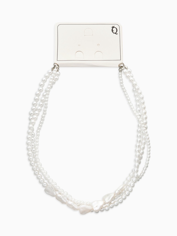 Чокер «Сияние жемчуга", сердце мятое, L=37см+8см удлинение, цвет белый в серебре