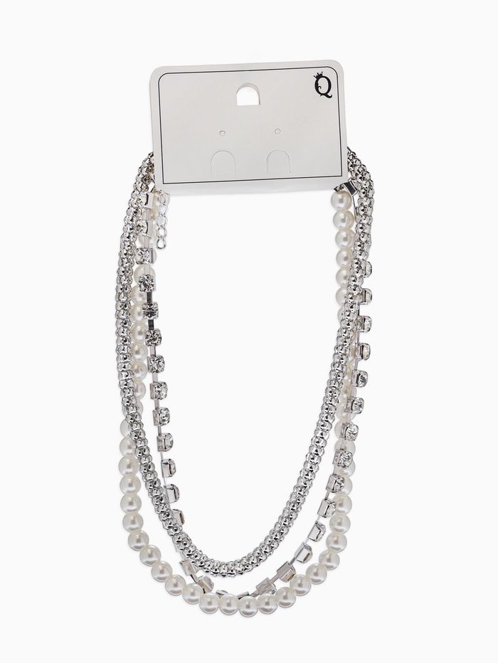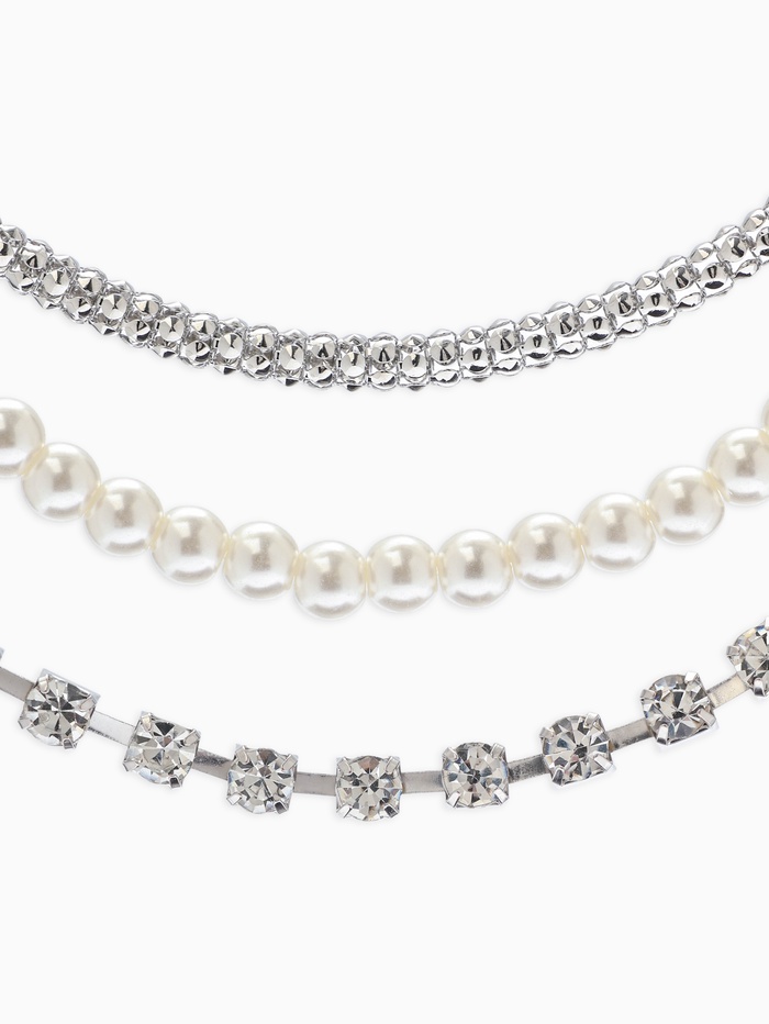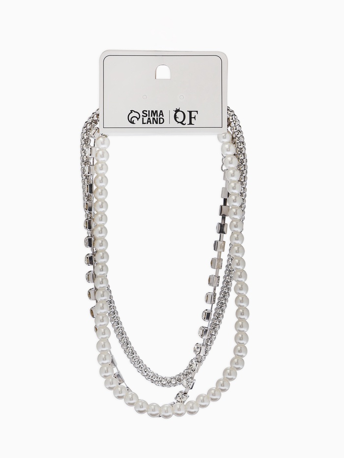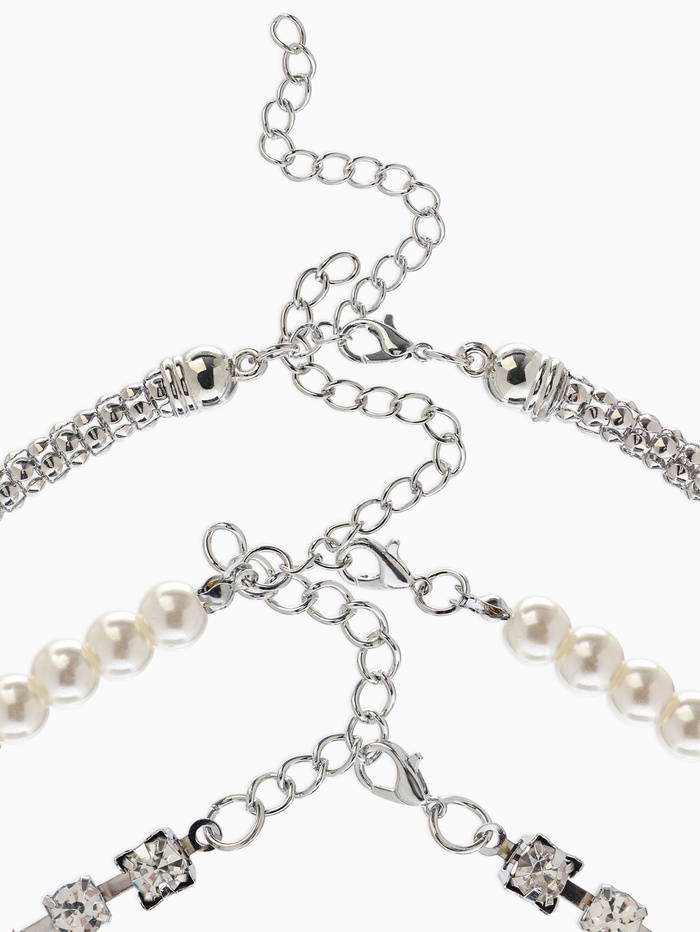 Чокер "Стиль" (набор 3шт) шар №8, со стразинками, тянется, 35+удл, цвет белый в серебре