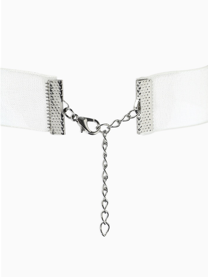 Белый текстильный чокер с изящным цветочным бутоном и серебристой фурнитурой длиной 30 см — стильный аксессуар для женщин, ценящих нежность и утончённость в деталях. Однослойная конструкция подчёркивает линию шеи, добавляя образу лёгкость и свежесть.