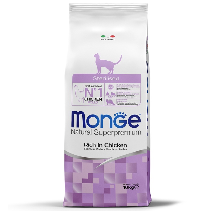 Monge Cat Daily Line Sterilised - это полноценный сбалансированный рацион для стерилизованных кошек и кастрированных котов с пониженным содержанием калорий, обеспечивающий профилактику ожирения. Содержит важнейшие антиоксиданты, такие как витамин Е, для поддержания иммунной системы. Обогащён клетчаткой. Одно из важнейших полезных свойств клетчатки в кормах для кошек заключается в ее способности контролировать вес животного.