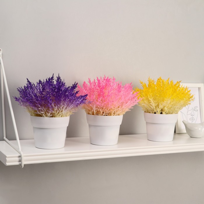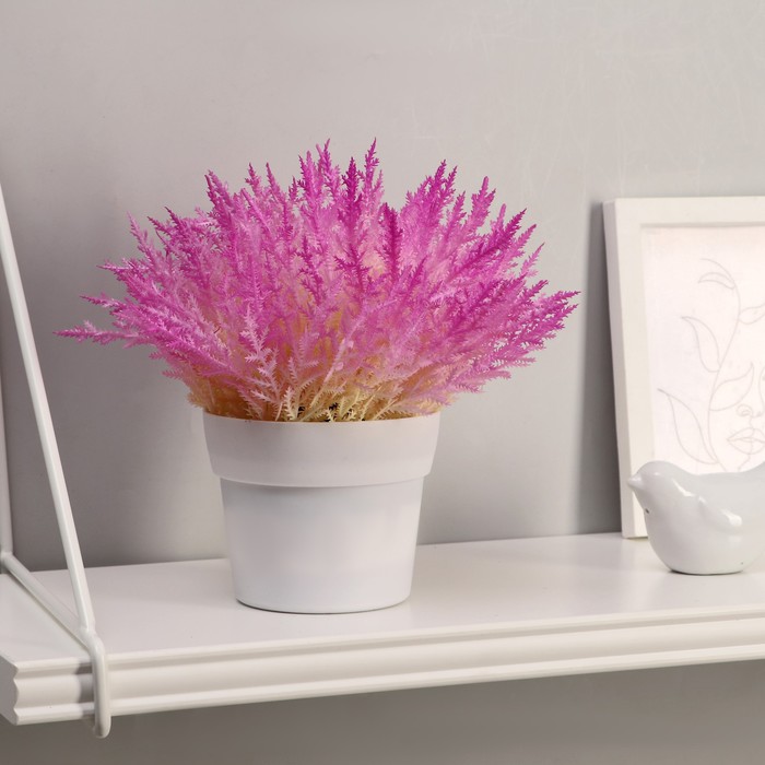 Искусственный цветок в горшке «Эрика травянистая» — это универсальный элемент декора, который легко впишется в любой интерьер или садовую композицию. Его высота около 20 см позволяет создавать яркие акценты на полках, столах или в цветочных композициях без необходимости ухода за живыми растениями.