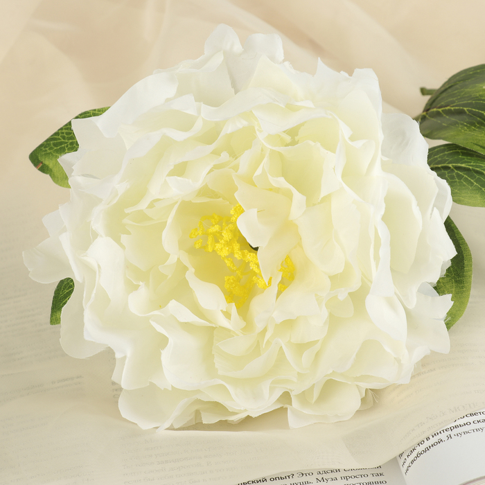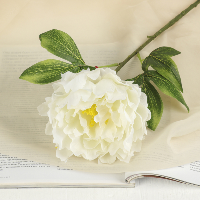 - Размер и цвет: Высота — 57 см, диаметр цветка — 13 см, выполнены в чистом белом оттенке, что придает свежесть и элегантность декору.