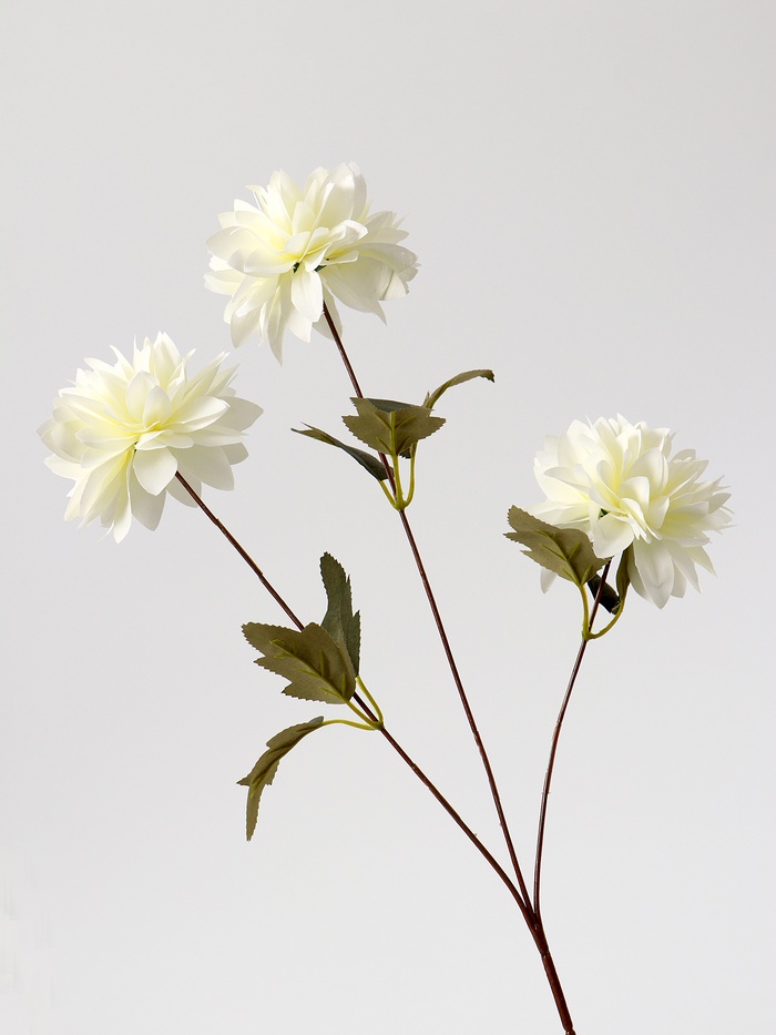 Изысканное украшение для вашего интерьера Искусственные белые георгины – это стильный акцент, который добавит элегантности и свежести вашей обстановке. Высокие искусственные цветы из текстиля выглядят как живые, но при этом не требуют ухода, сияя своей красотой круглый год.